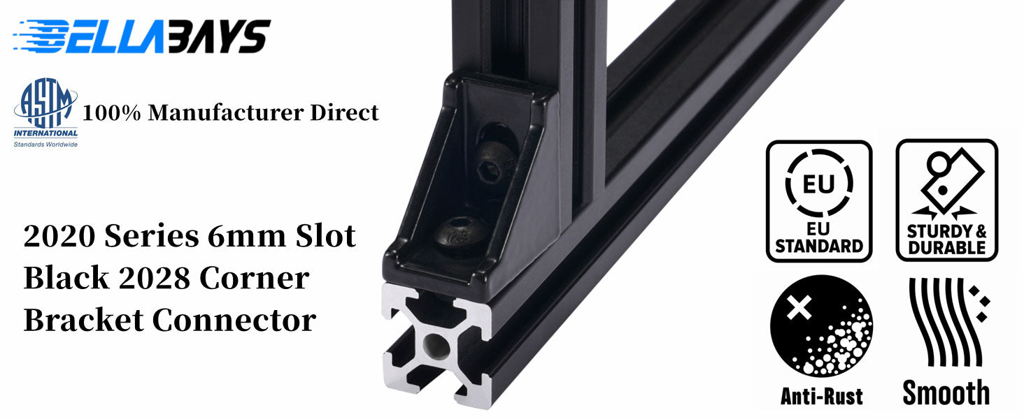 2028 corner bracket connector set paired with 2020 series 6mm slot aluminum extrusion, widely used in various fields such as 3D printing, fitness equipment, home decoration, architectural structure, automation facility, automotive modification, transportation, electronic devices, and aerospace etc.