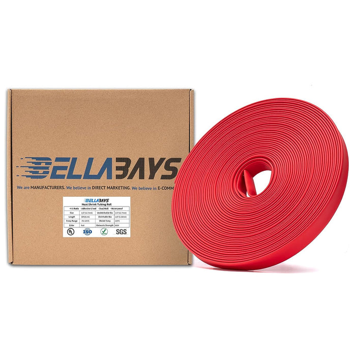 4:1 Ratio 1/2 Inch (12.7mm) 30 Ft (9m) Red Heat Shrink Tubing Roll Adhesive Lined Tube, Waterproof Marine Grade, Insulation Sealing and Oil-Proof (UL,RoHS,SGS,ISO Certification)