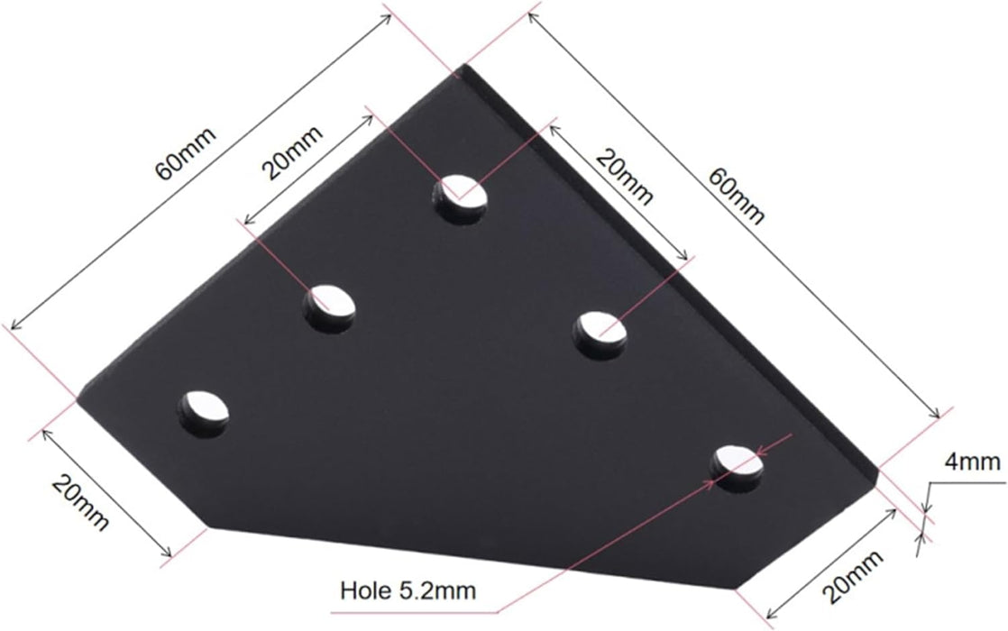 8 Sets 20 Series L Shape Joint Plate Connector Black 5 Hole for 6mm Slot Aluminum Extrusion with 40pcs Sliding T Nuts 40pcs Hex Socket Cap Screw Bolts 1pc Wrench 3D Printer Accessories
