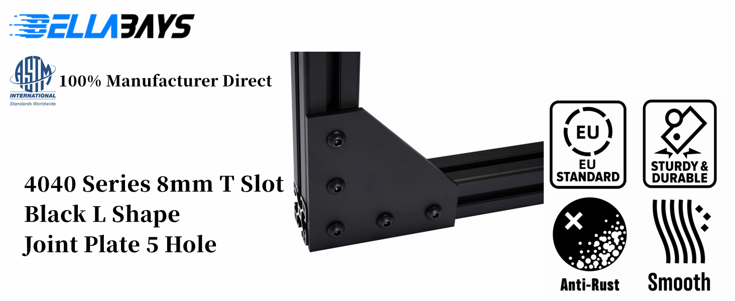 8 Sets 40 Series L Shape Joint Plate Black 5 Hole for 8mm T Slot Aluminum Extrusion with 40pcs Roll in Spring Nuts 40pcs Hex Socket Cap Screw Bolts 1pc Wrench 3D Printer Accessories